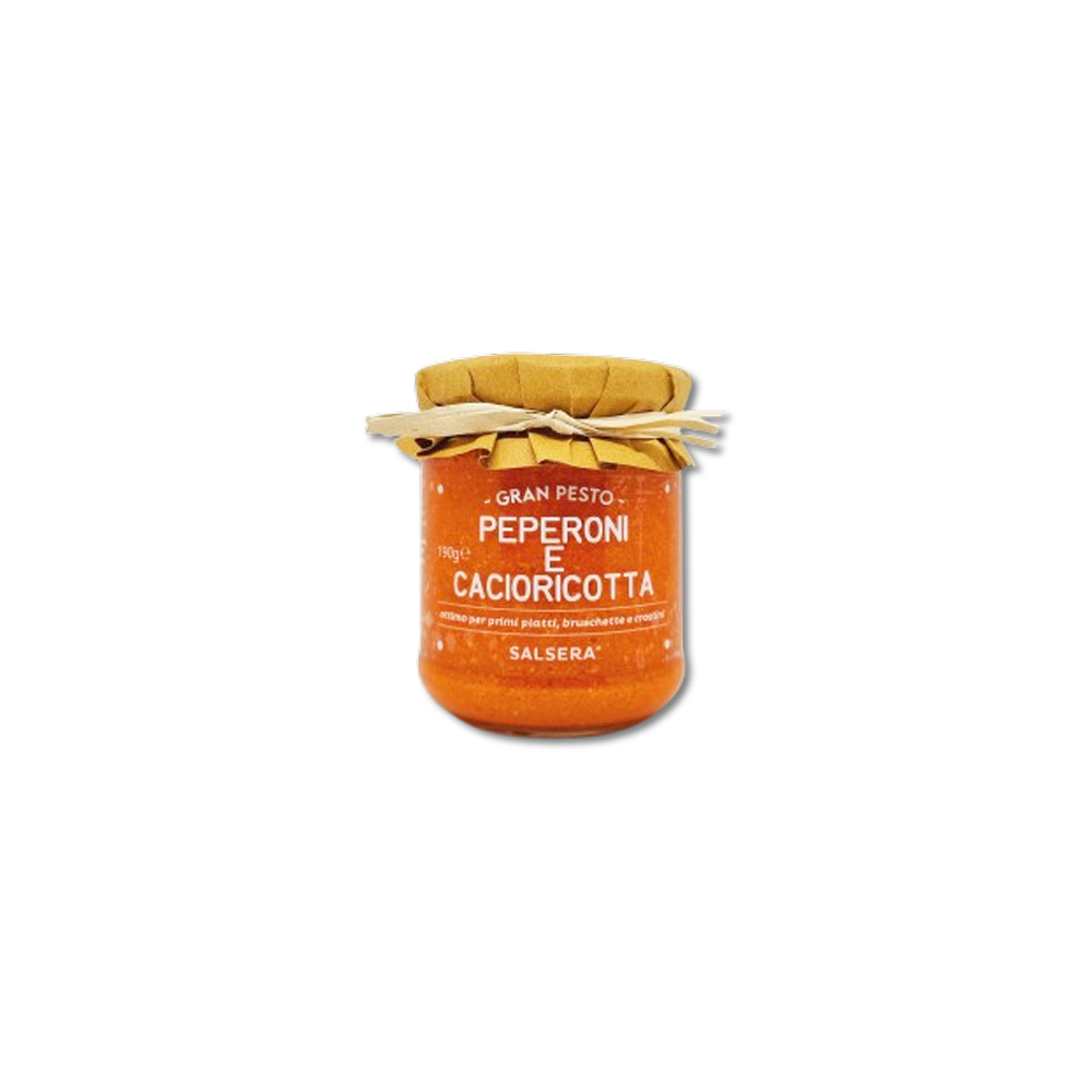 Gustosa salsa a base di peperoni e cacioricotta indicata per condire pasta, insalate di riso. Deliziosa nei tramezzini. Perfetta per insaporire omelettes in aggiunta a uova e formaggio.