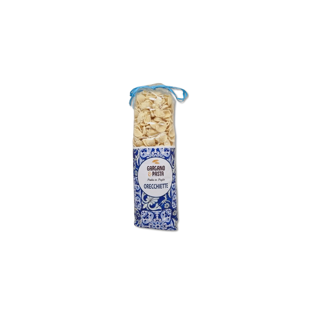 Queste orecchiette sono realizzate artigianalmente con semola di grano duro. Si prestano alla preparazione dei primi piatti tipici della tradizione pugliese. Confezione speciale con riproduzione di maioliche pugliesi.