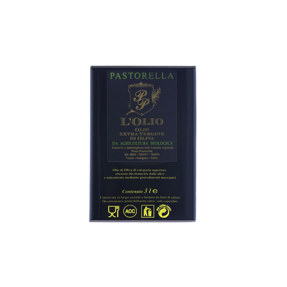 L’olio extra vergine di oliva Pastorella è un mono-varietale ottenuto da circa duemila piante di Ogliarola Garganica di proprietà aziendale e da agricoltura biologica certificata.