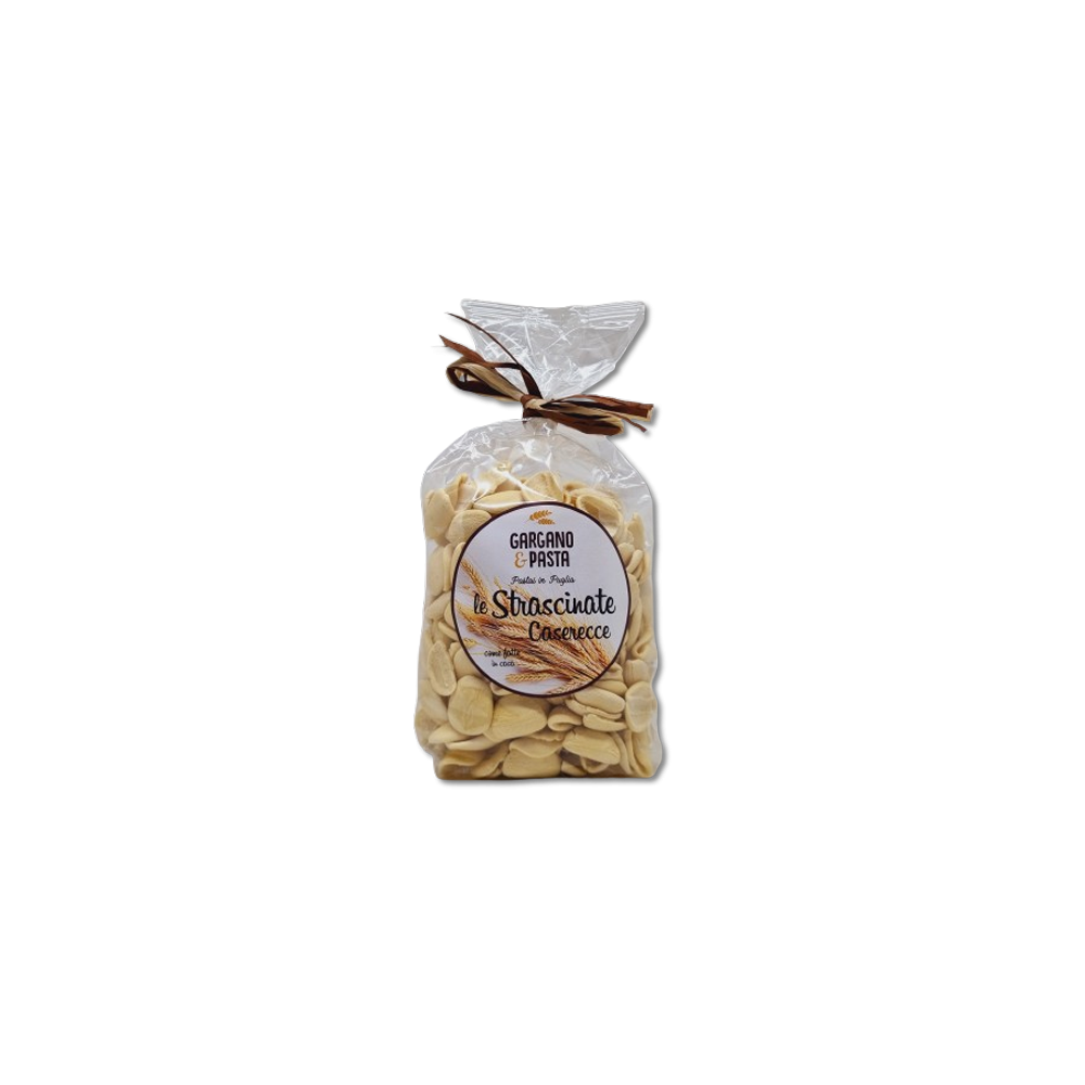 Le strascinate sono una versione particolare delle orecchiette ma molto più grandi e aperte e senza la "cupola". La particolare tecnica di lavorazione consente di avere un lato liscio e uno profondamente irregolare che raccoglierà meglio il condimento.