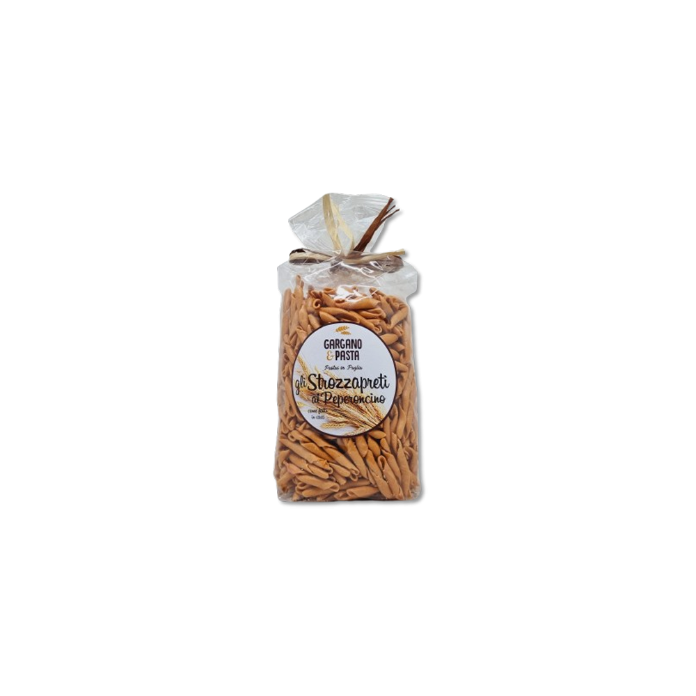 Tutto il sapore degli strozzapreti con aggiunta di peperoncino che dona loro il gusto deciso ed il colore caratteristico della spezia.